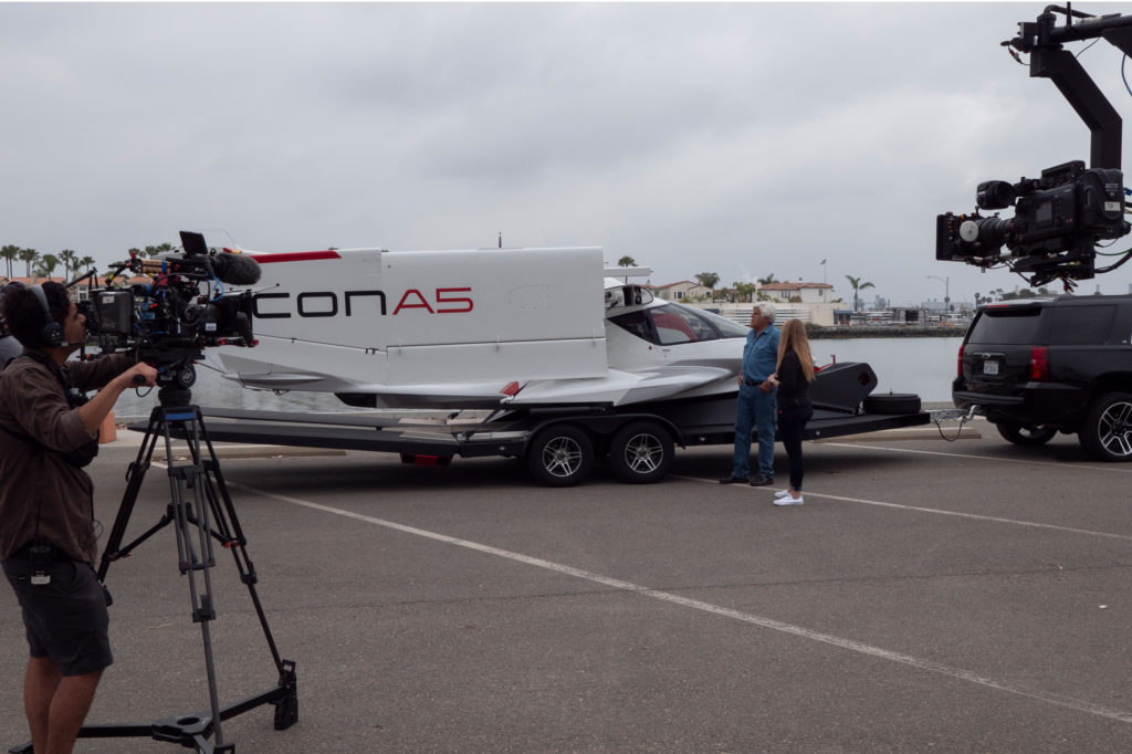 During the episode, which aired on Season 5 of the series, Jay Leno took a demonstration flight in the ICON A5. Under the guidance of ICON’s Lead Pilot, Jay takes off from the water at Long Beach’s Olympic Stadium, located just south of Los Angeles International Airport. From there, they fly up the picturesque coast of Malibu, and over to Burbank Airport, near Jay’s famous garage.